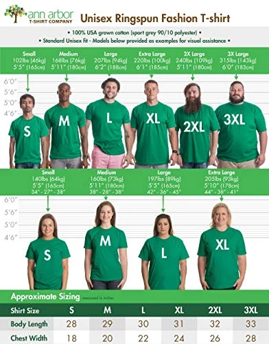 - UNISEX MODERN FIT SIZING | this shirt is slightly tapered to be a little less boxy than the old style of mass-market t-shirt. Nothing drastic, and most people wear the same size in our shirts as they do in all of their others, but you might go one size larger if you’re on the fence. It is pre-shrunk, but like any high-cotton product, will still shrink slightly in the wash. Our model photos are the real thing – the actual shirt on our salesguy, Rich. He’s 6′ 2″, 200 lbs and wearing a large